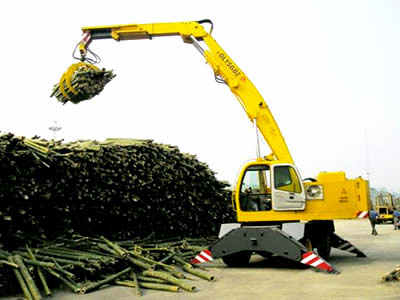 適用工況:主要適用于造紙、人造板、林木業、生物發電、棉麻行業對木材、散草、秸桿、棉麻等泡松原料的裝卸、堆垛、拆垛作業。