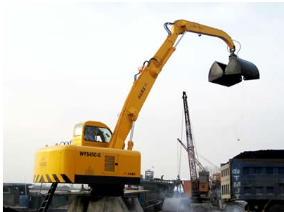 WYS50-G electrohydraulic fixed folding arm grab adopts electrohydraulic drive and pilot control for slewing, winch, luffing and grab opening and closing operations. Stable operation, stepless speed regulation for each action; 60% energy consumption can be saved compared with internal combustion engine drive under the same operating efficiency; The cab is equipped with cold and warm air conditioners and multi-directional adjustable seats, making the operating environment comfortable; After being equipped with different hydraulic grab buckets, they have small deadweight and large grasping force, and can grab bulk raw materials such as sand, coal, etc.