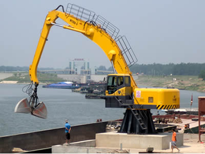 WYS50-G型電動液壓固定式疊臂抓料機的回轉、卷揚、變幅及抓斗開閉作業等全部采用電動液壓驅動,先導控制。具有作業平穩、各動作可無級調速;同等作業效率下可比內燃機驅動節省60%能耗;司機室安裝冷暖兩用空調、多向調節座椅,作業環境舒適;配裝不同的液壓抓斗后均有自重小、抓取力大,對沙石、煤等散裝原料進行抓取作業。 該固定式抓料機是港口、車站、碼頭等固定作業場所進行散貨裝卸的最佳設備。