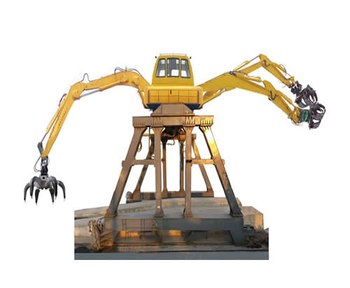根據神華寧煤集團凍煤卸車實際工況要求:我公司為其設計龍門軌道式三臂凍煤卸車機,即在卸車機前端設計雙臂雙手配握取式振動器,握住車箱兩側箱板實施中頻振蕩,將輕微凍層及搭橋的煤炭卸下,且不損壞車體。同時在后面另設計一支單臂,配裝破冰抓手或液壓鎬,解決凍煤破冰及搭橋無法卸車問題。